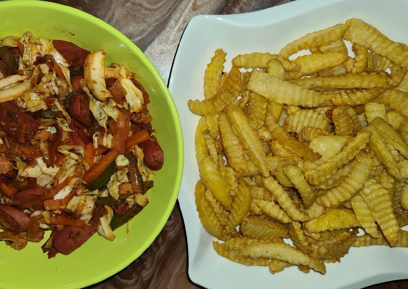 Many things affect the quality of taste from Chips and sausage, starting from the type of ingredients, then the selection of fresh ingredients, the ability to cut dishes to how to make and serve them. Don't worry if you want to prepare Chips and sausage delicious at home, because if you already know the trick then this dish can be used as an extraordinary special treat.