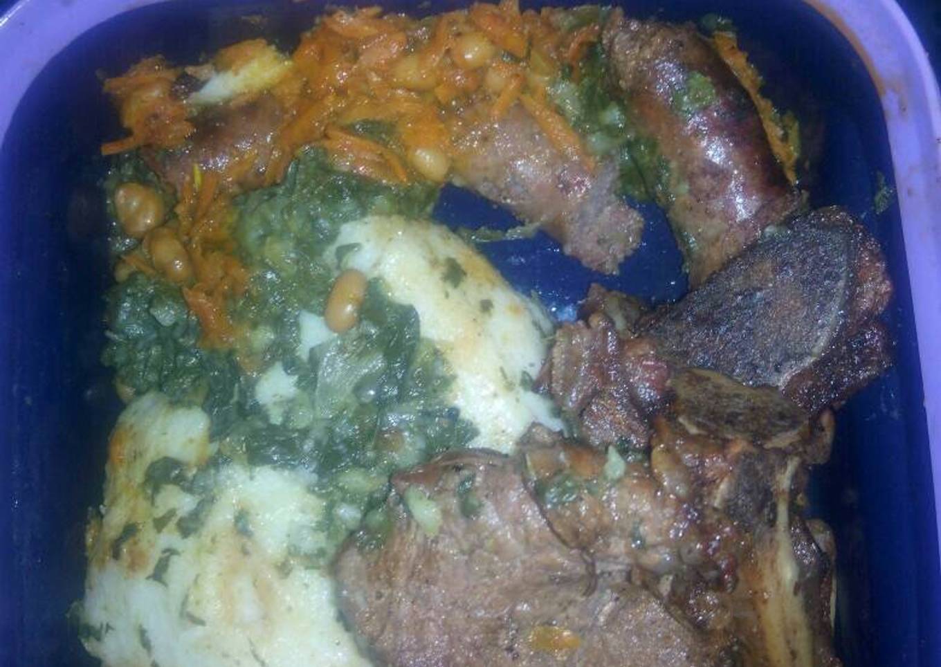 - Fry your diced onion and peppers on olive oil till slightly brown, then add all your spices and fry, after add your carrots and fry for 30 minutes then after add your baked beans and fry for 10 minutes then you done